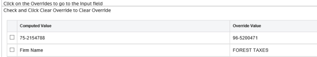 There should be no overrides in the return if all entries are made through the Organizer screens. If you have differences on the case study comparison screen, open the Master Carson case study and compare the Organizer screens to your screens.