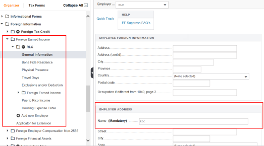 Select the hyperlink Foreign Earned Income to enter foreign compensation.