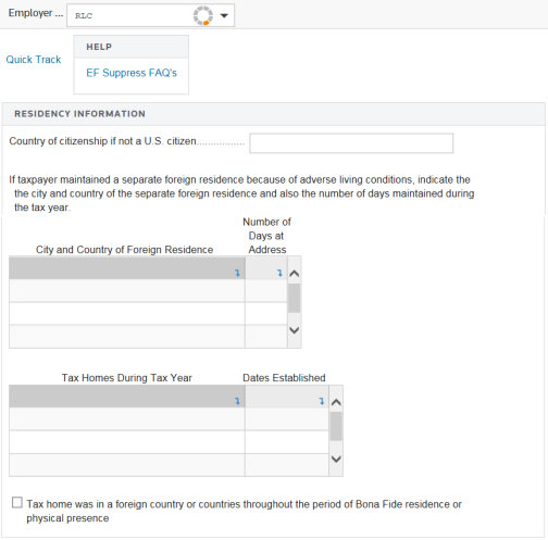 Use the Bona Fide Residence screen in the Foreign Earned Income folder to enter bona fide residence information related to this employer.