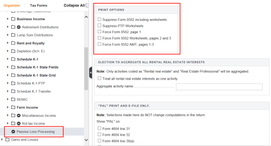 1040: Passive Losses - Return and Print Options