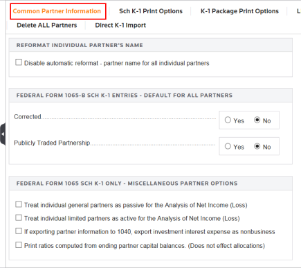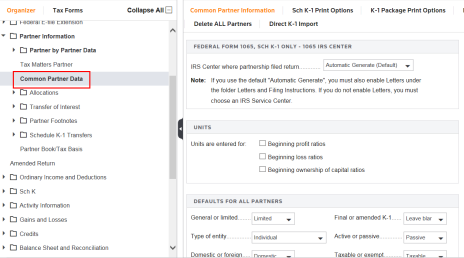 The Common Partner Data folder contains information for all partners. This feature is very helpful for partnerships with a large number of partners. Specific partner information can be entered in the Partner by Partner Data folder.