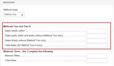 Missouri, for example, can be prepared using a single factor, 3-factor, or another approved method. If you choose the Single Factor method, you need to enter additional information.