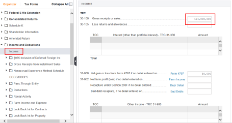 The Income and Deductions folder contains a subfolder for each income and deduction item on the 1120 return. These folders are organized in the same order they are found on Form 1120, Page 1.