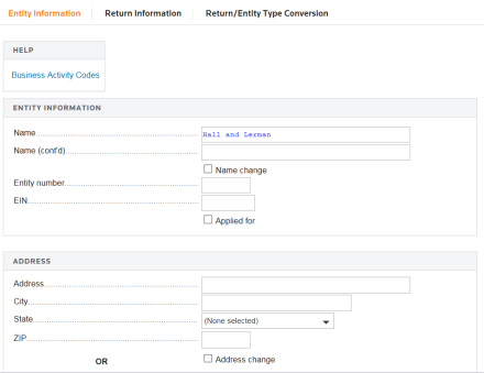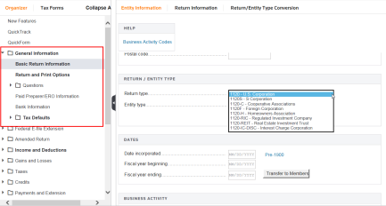 For each return, access the Entity Information tab on the General Information > Basic Return Information screen. It is mandatory that you specify the appropriate return type for all returns in the consolidation.