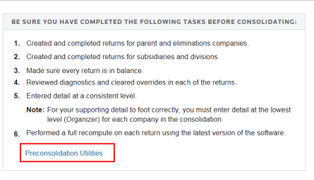 You may want to review the other items listed under Step 4: Preconsolidation Checklist and the Inconsistency Report.