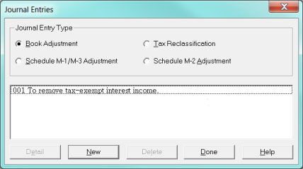 - Schedule M-1/M-3 Adjustments: Entries to reconcile book and taxable income. Entries must affect income or expense on one side and Schedule M-1 on the other.