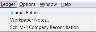 From the Trial Balance Grid, select Ledger > Journal Entries to show the Journal Entries dialog box. Select the type of journal entry by clicking the appropriate radio button under Journal Entry Type: