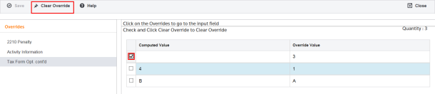 Another good review procedure is to clear all overrides. The tax application automatically scans the return and documents all overrides found.