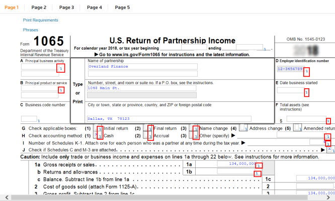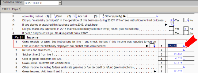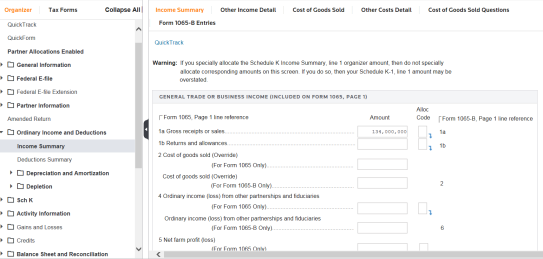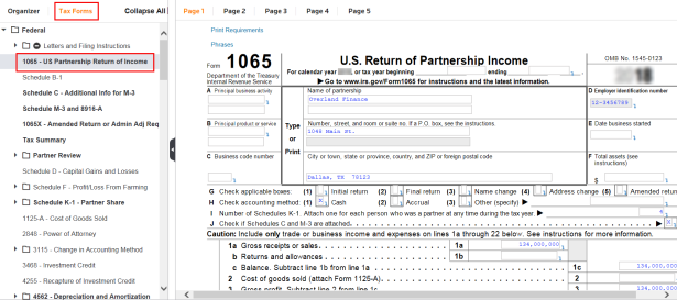 The tax application takes you to the workpaper for line 1.