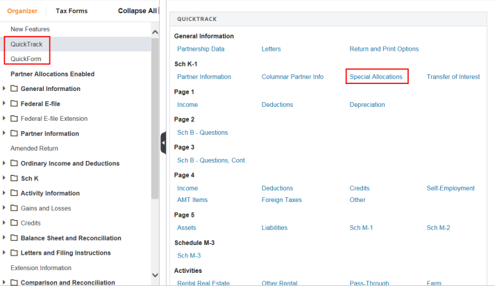 - Quick Track and Quick Form (purple box)