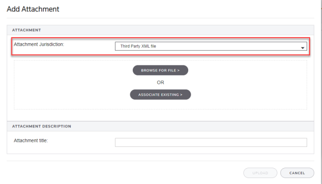 - On the Add Attachments dialog box, select Third-Party XML File from the drop-down list, and then select Next.