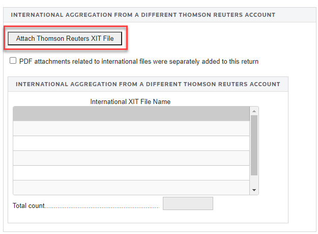 - After attaching the XIT files, confirm that the XIT attachment details are correct in the International Aggregation section at the bottom of the screen.