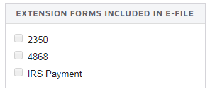 - Review the extension forms included in the e-file to ensure that the correct forms are included.