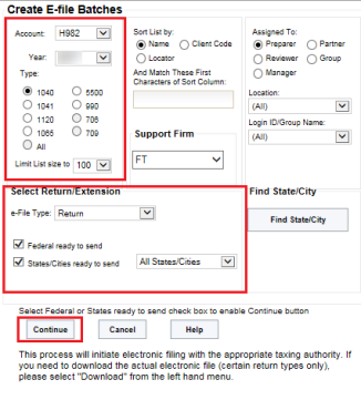 - You will not be able to send federal returns if you select only States Ready to Send.