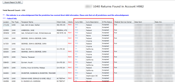 - From the E-file Status Report screen, click the jurisdiction for the locator.