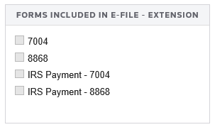 - Select E-file > Additional Information > Forms Included in E-file.