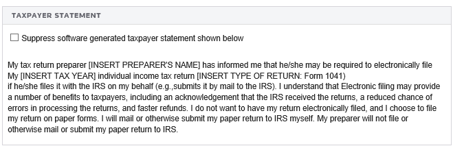 1041 E-file: E-file Opt Out: Taxpayer Statement