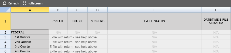 E-file Status The e-file status displays after an e-file is created. The status displays whether the e-file was created successfully, qualified to be submitted for e-file, and/or not qualified because of reject diagnostics or validation errors.