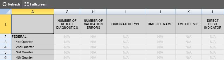 Number of Reject Diagnostics The number of reject diagnostics existing when the latest e-file created is displayed.
