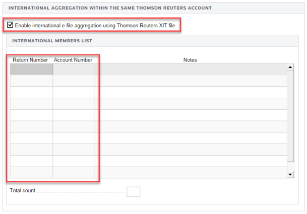 - Click the Enable international E-file aggregation using Thomson Reuters XIT file check box, shown below.