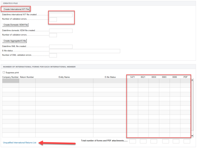 Prior to generating the international portion of the e-file, compute each locator with international returns (5471, 8621, 8858, 8865 and 8886). Review and clear any e-file reject diagnostics prior to generating the international segment (*.xit) of the e-file.