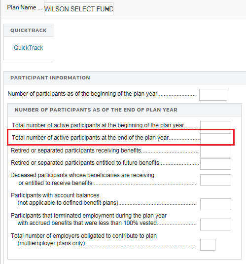 - In the Plan Participant Information section, the total number of participants at the end of the plan year should be NONE.