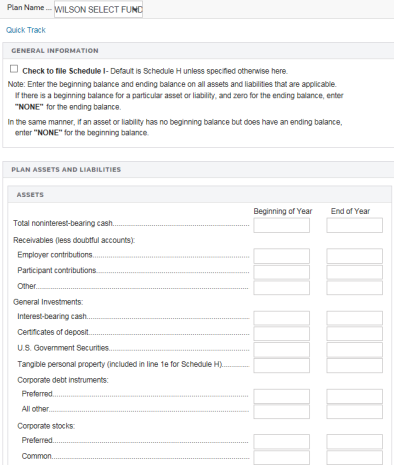 - Navigate to Organizer > 5500 Series > Plan Name > 5500 > Financial Information (Sch. H/I) > Assets and Liabilities.