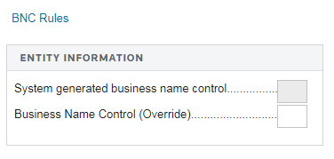 The system automatically generates the Business Name Control. You may override the Business Name Control if the calculation does not comply with Pub. 4206 rules.