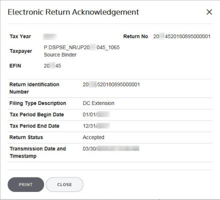 - The report shows the returns that have electronic filing XMLs for the selected year. To see a different year, select the year from the year drop-down list at the top.