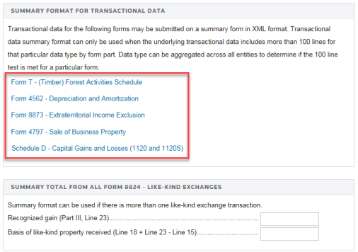 The IRS allows summary data to be reported for the following forms: