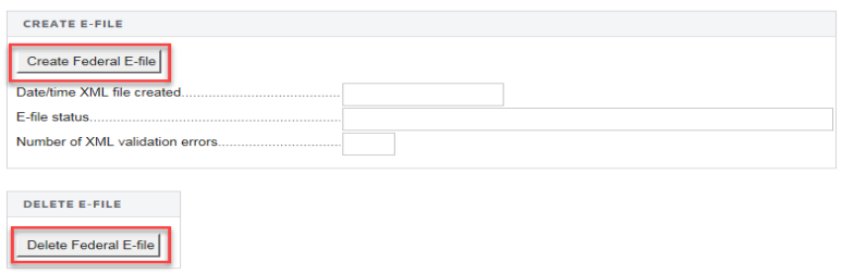 - Select the Delete Federal E-file button to delete an existing federal e-file.