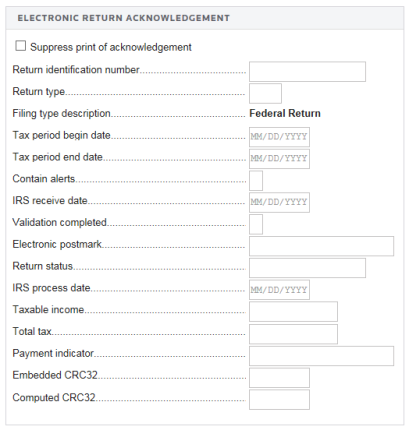 - Scroll down the screen to view the Electronic Return Acknowledgment section.
