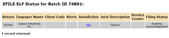 - Awaiting Acknowledgment: This option will show you which returns and jurisdiction have been successfully transmitted but have not yet been through the receiving process of the taxing authority.