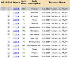- On the next page, the Alabama return will be shown along with the Select check mark or hyperlink option.