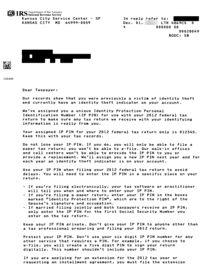 Identity Protection Personal Identification Number (IP PIN)