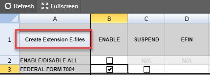 - Go to E-file > Enable/Create, and select the Extension tab.