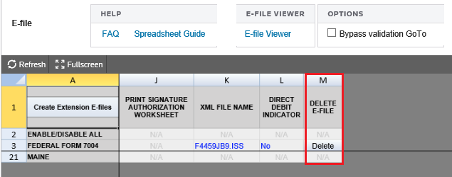 - Click the Delete button in the Delete E-file column.