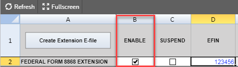 - On the Organizer tab, select E-file > Enable/Create.