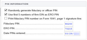 - For the fiduciary/officer PIN, you can select any or all of the following options: