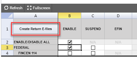 On the E-file > Enable/Create screen, select the Create Return E-files button.