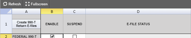 1041 E-file: Return - 990-T Spreadsheet Tab