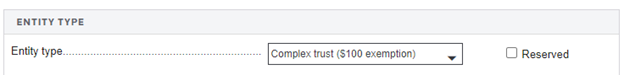 For the Entity Type, select Complex Trust ($100 exemption) or Complex Trust ($300 exemption).