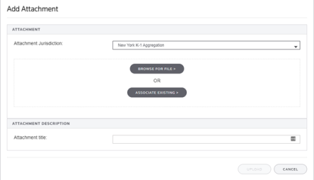On the Add Attachments pop-up dialog box, select Federal K-1 Aggregation from the drop-down list.