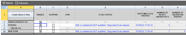On the E-file > Enable/Create screen, select the Create Federal E-file button.