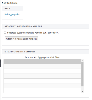 Go to Organizer > States > New York > E-file > Attachments > K-1 Aggregation > NY K1 Aggregation.