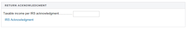 - Select the IRS Acknowledgment link to view the taxable income acknowledgment shown below.