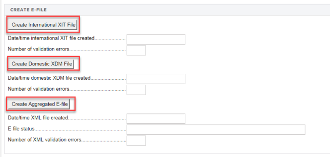- On the same Create E-file screen, press the Create Domestic XDM File button to general the domestic e-file portion.