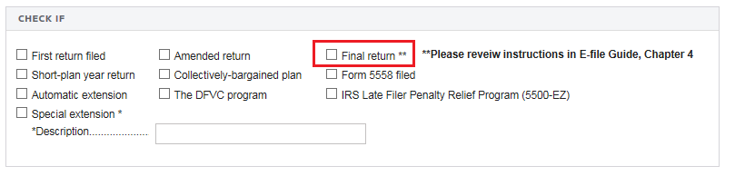 5500 E-file: Form 5500 for Pension Benefit Plans Numbered Less than 501 - DOL Criteria for Final Year XML Elements