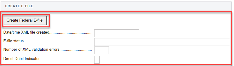 On the E-file > Create E-file screen, click the Create Federal E-file 990/990EZ/990PF button.