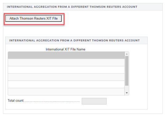 - After attaching the XIT files, confirm that the XIT attachment details are correct in the International Aggregation section at the bottom of the screen.